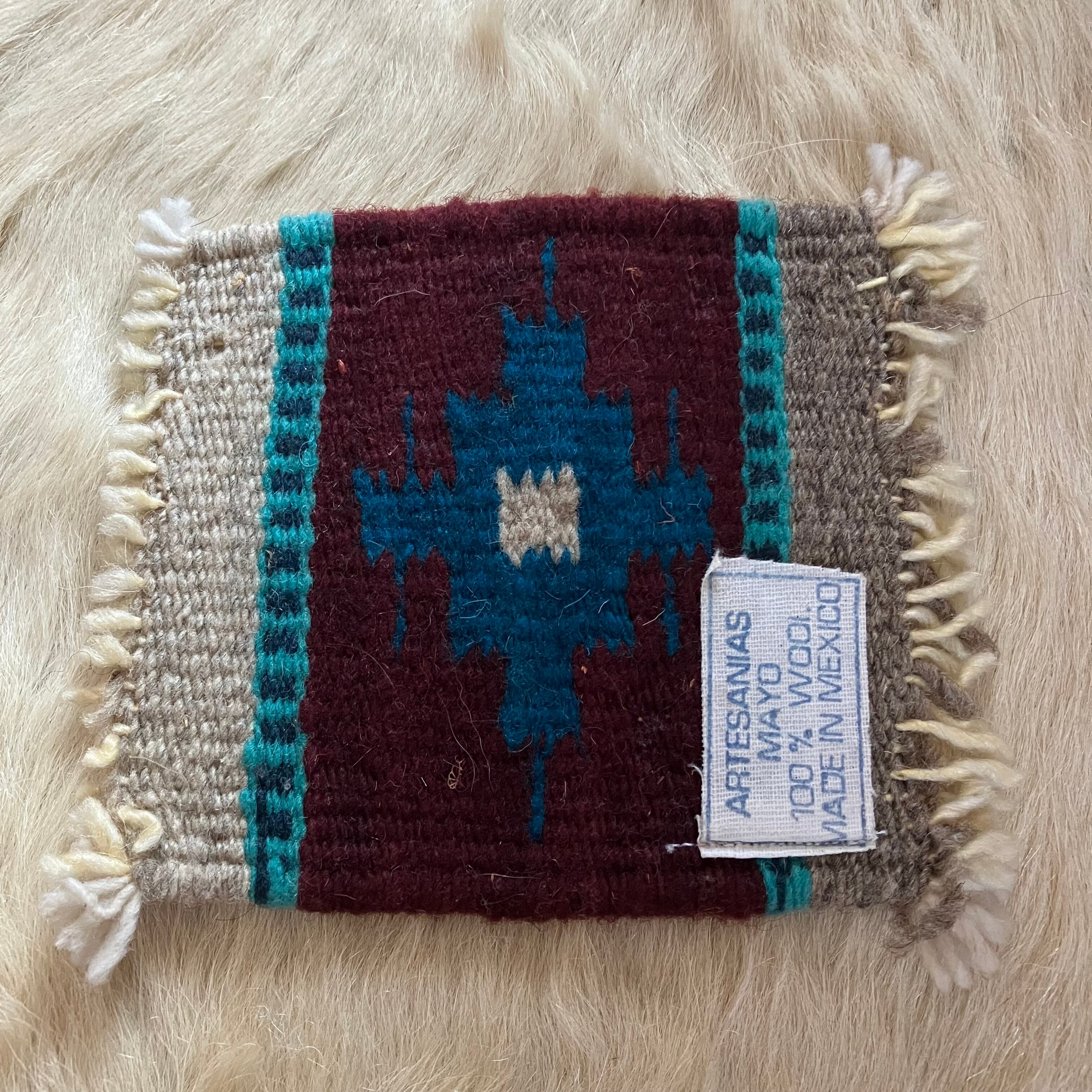 メキシコのARTESANIAS MAYOで作られた、最高に雰囲気の良いコースターサイズのスモールラグになります。