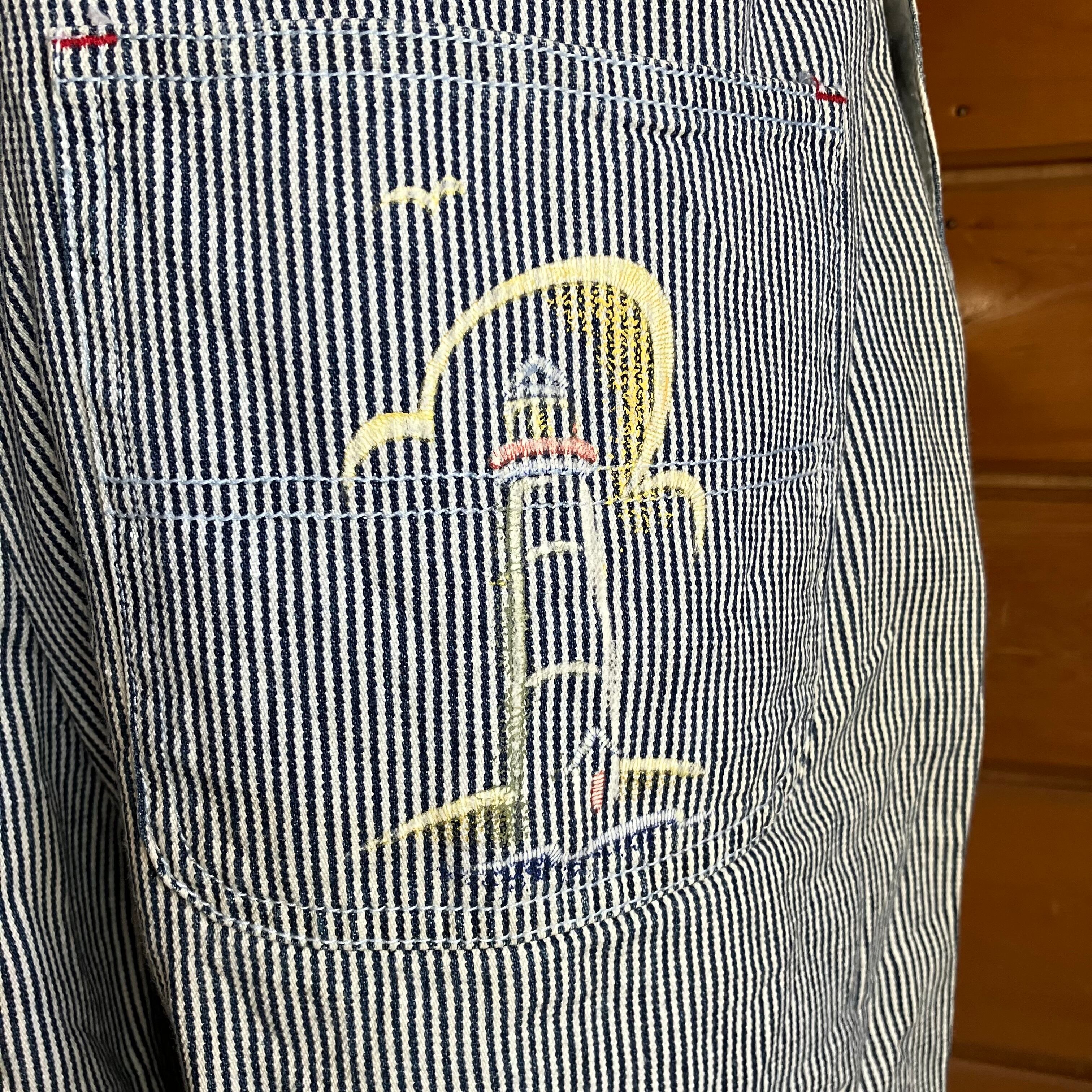 ヒッコリーストライプ オーバーオール ショート