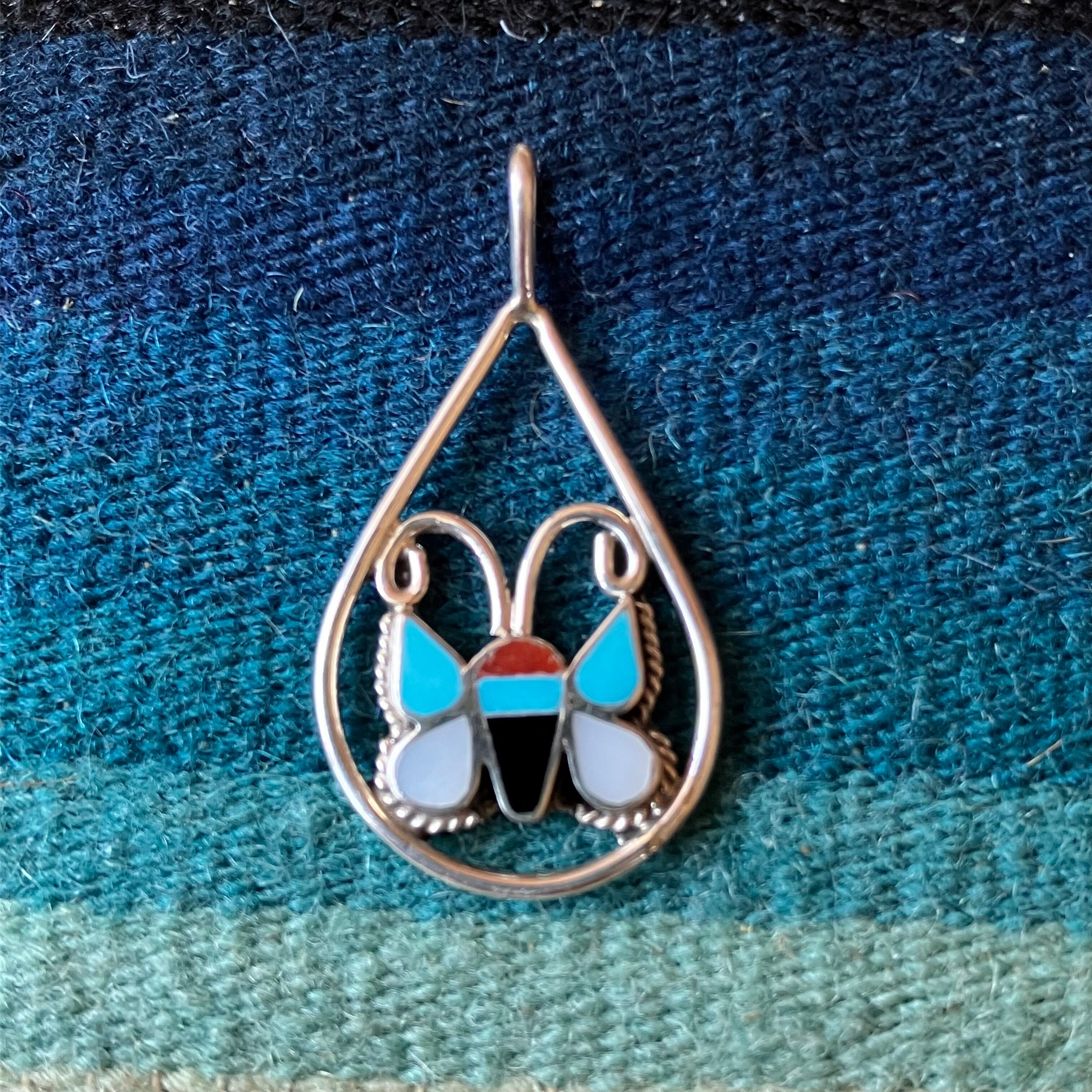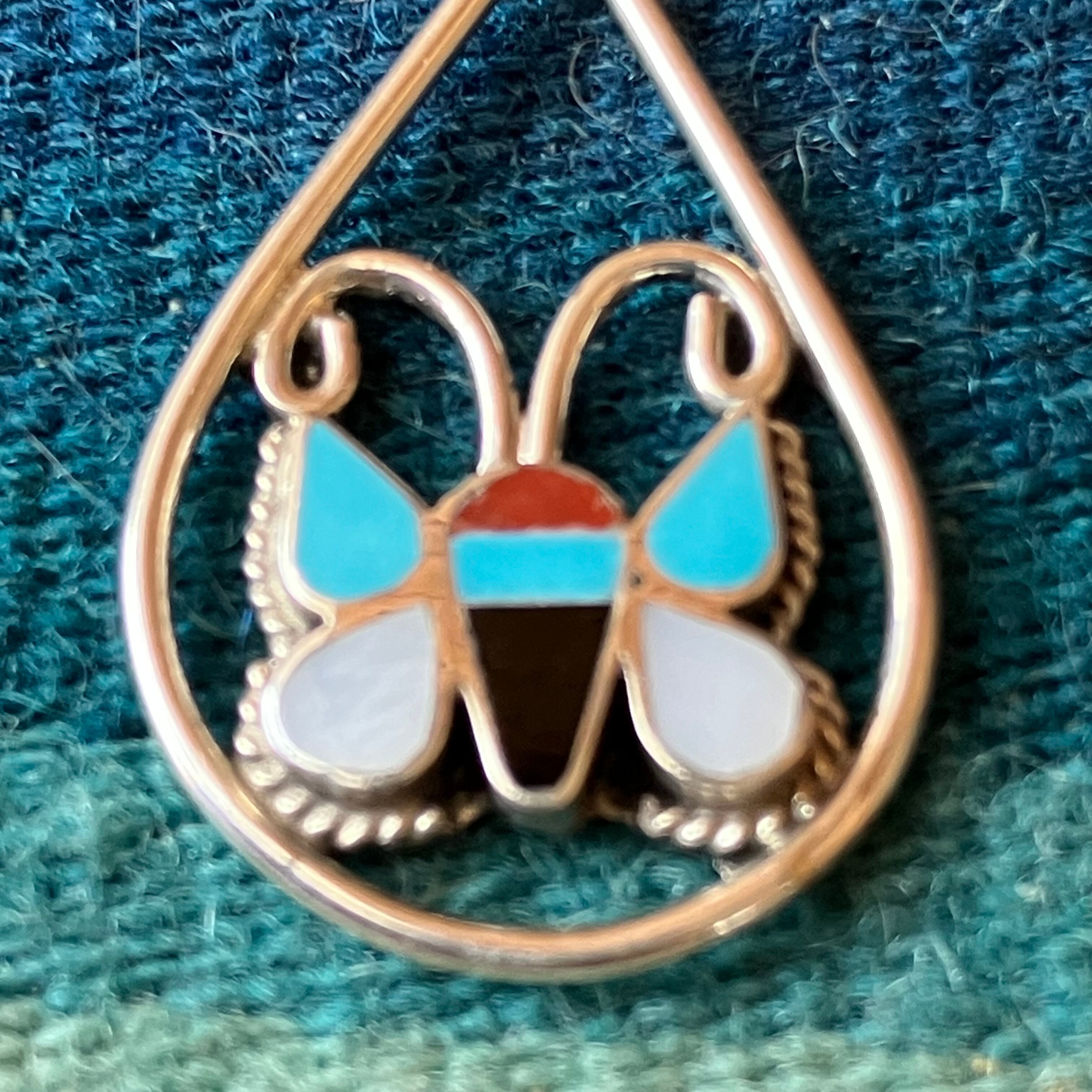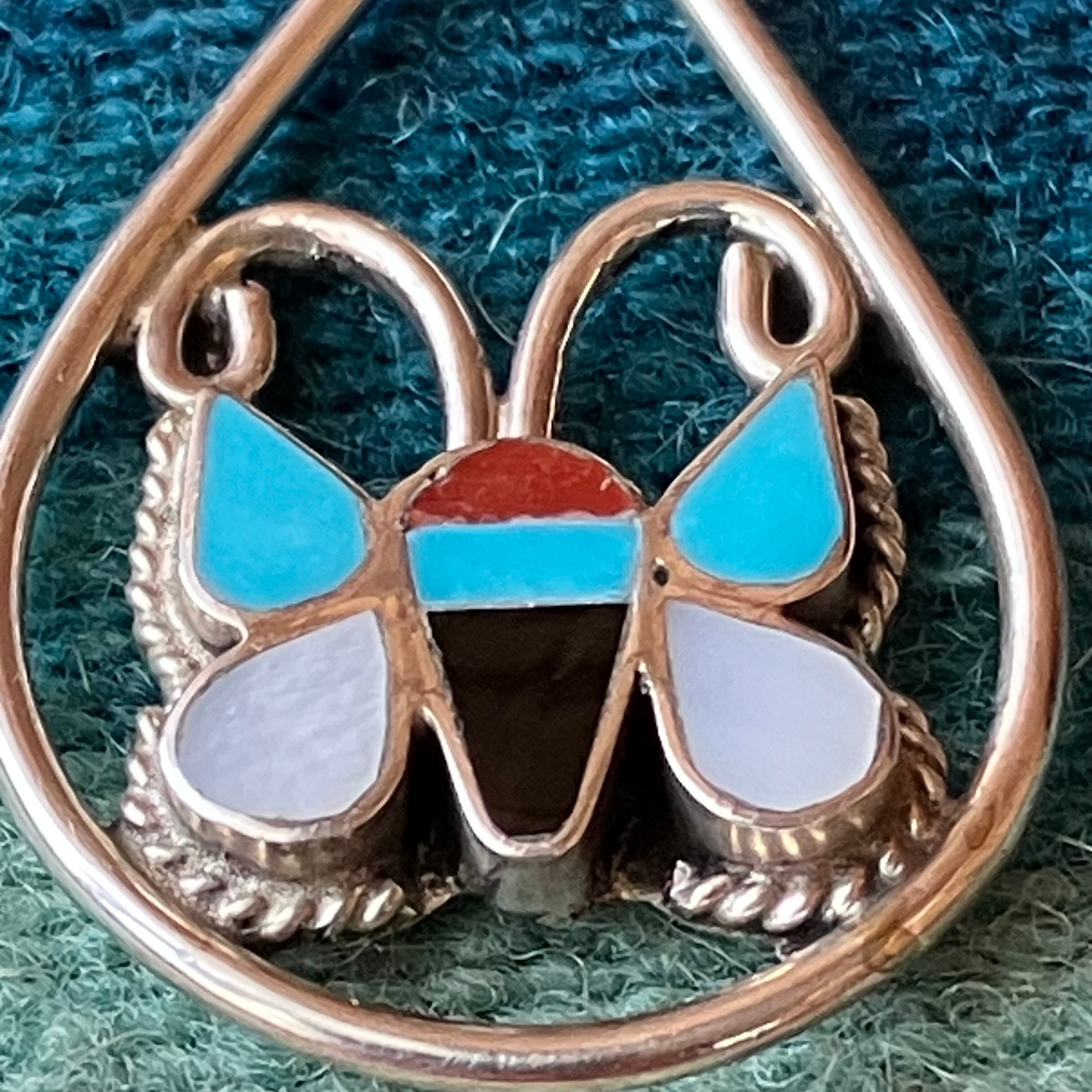 インディアンジュエリー ZUNI インレイ バタフライ シルバートップ