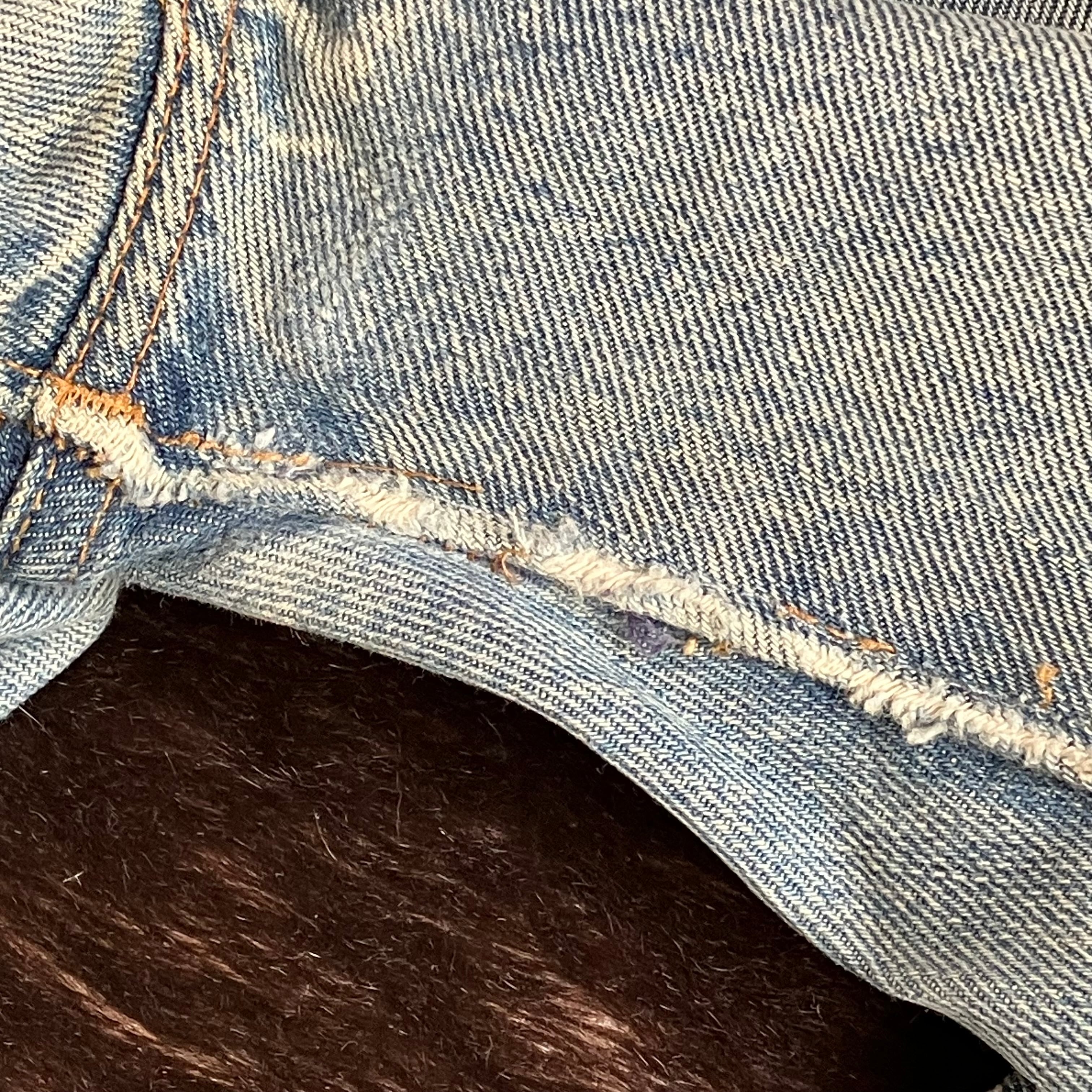 年代物ですので、デニムの色落ち、リペア、擦れ、汚れなど見られる部分はございますが、より味わいある1本となっております。