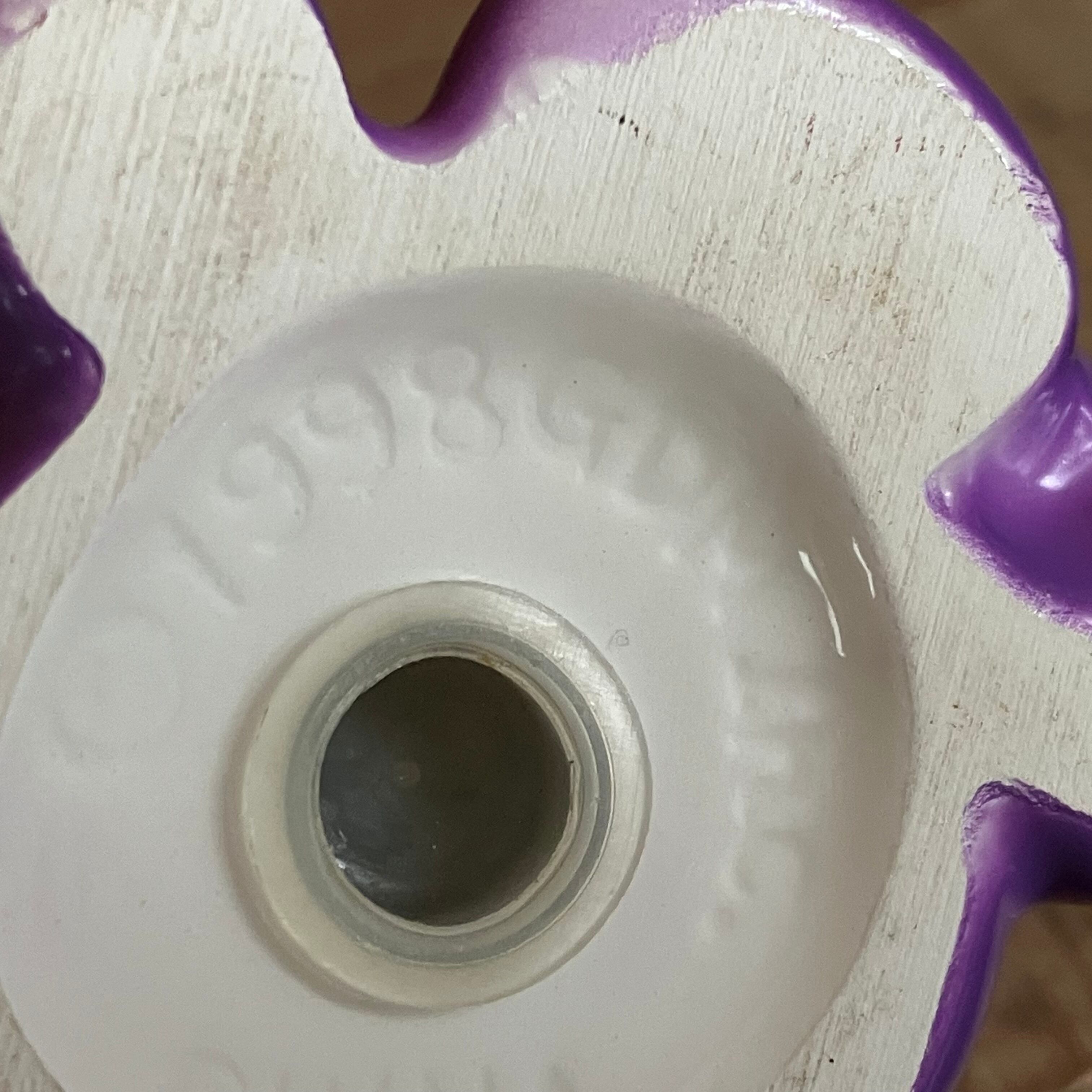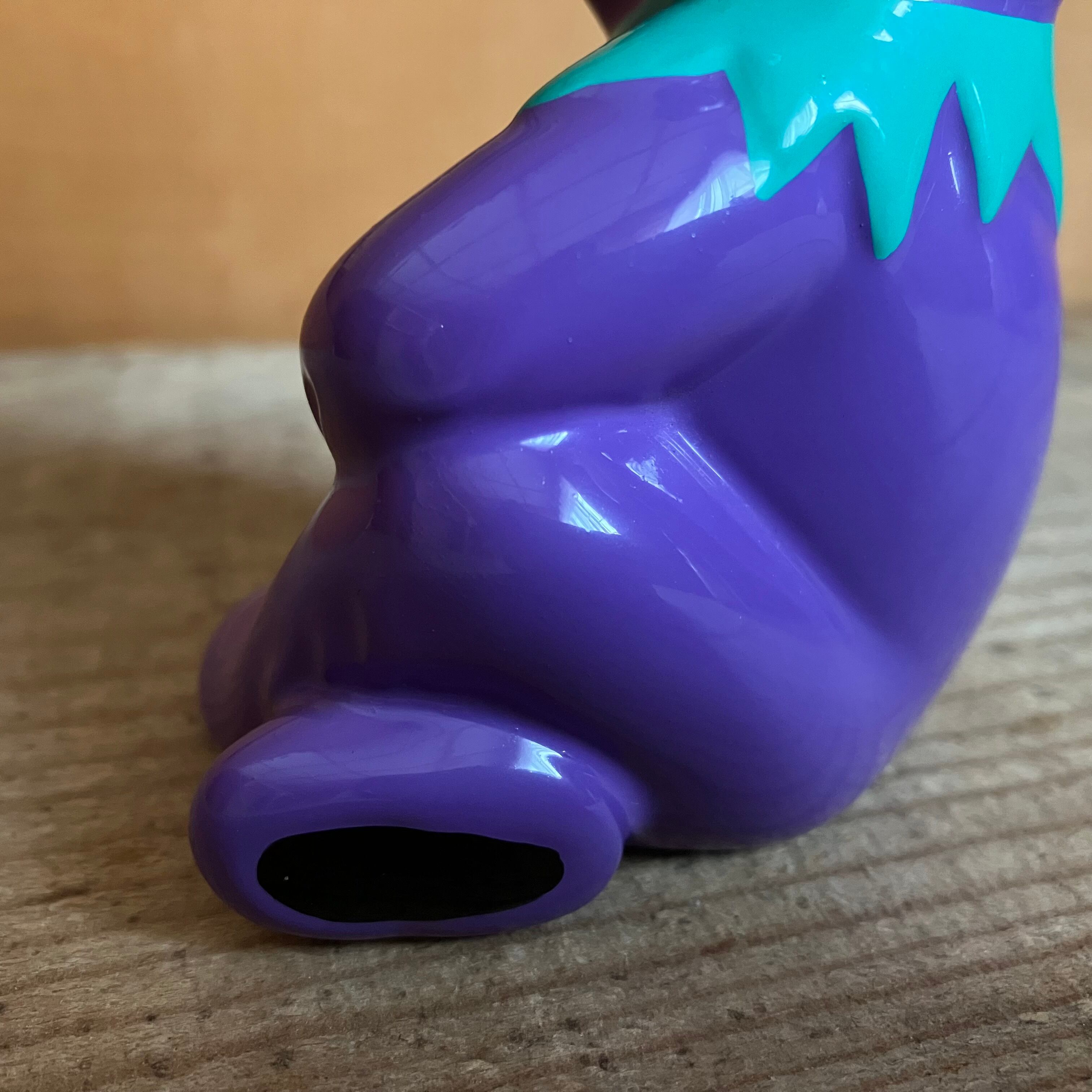 ダンシングベアの一人、紫カラーのベア。座っているポーズが可愛いです。