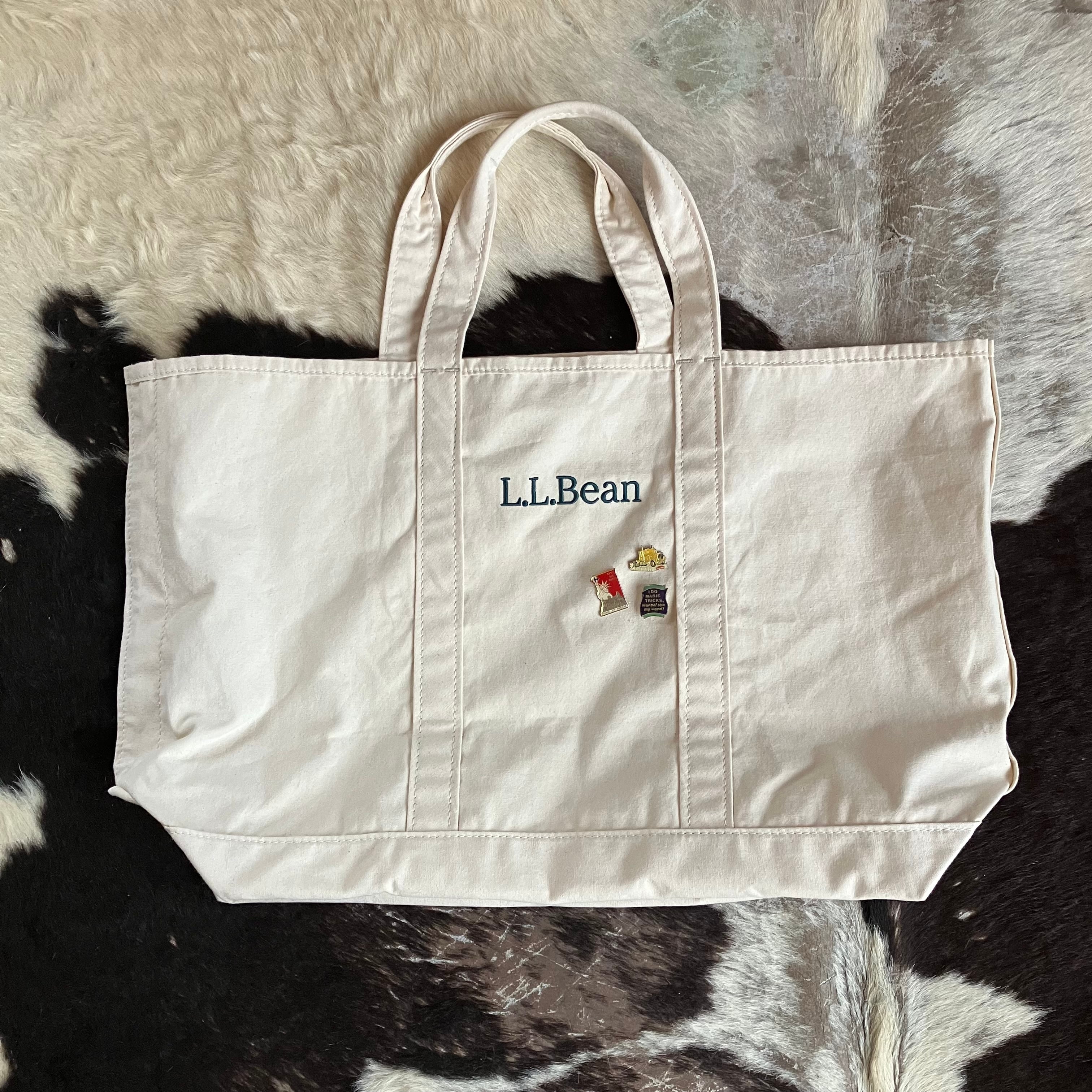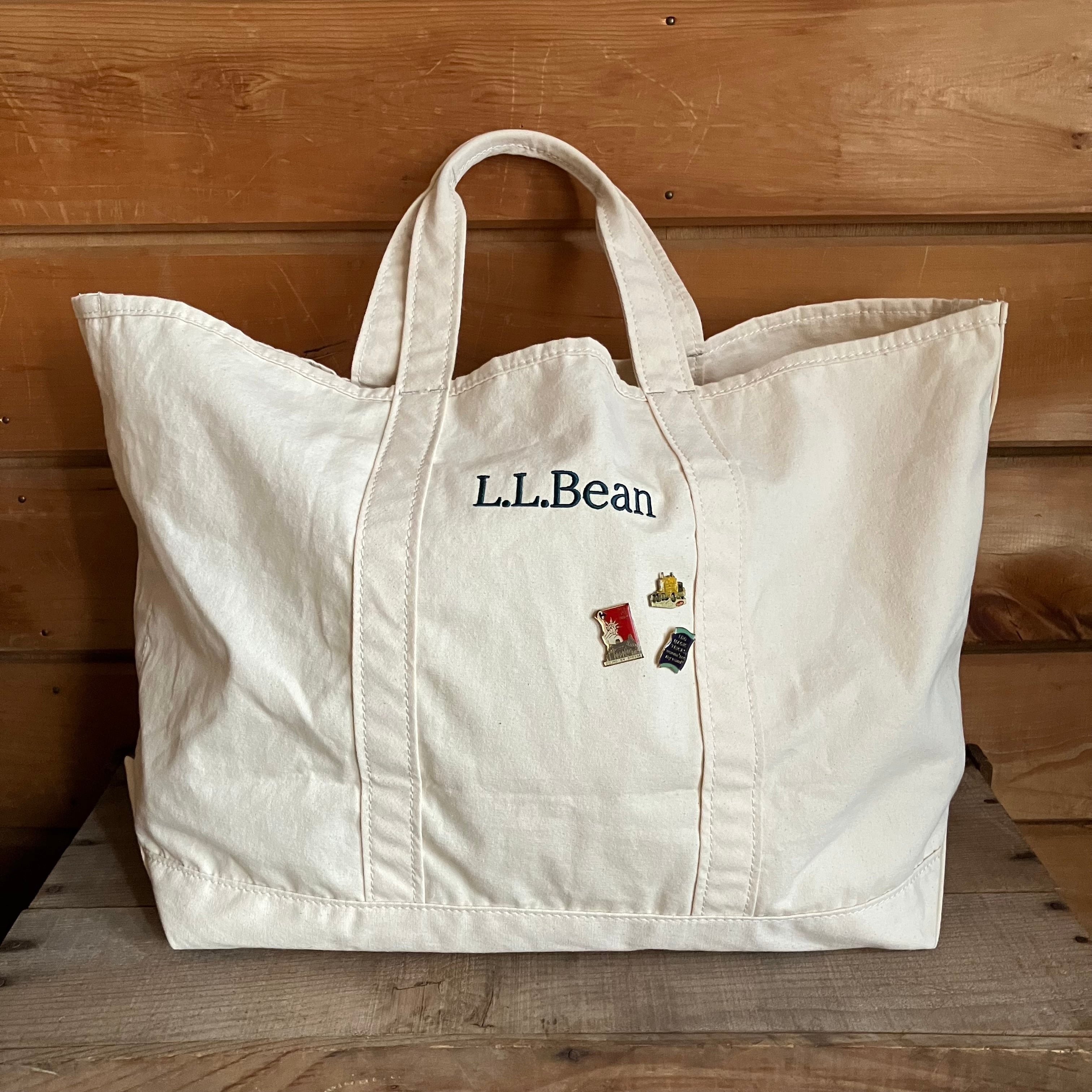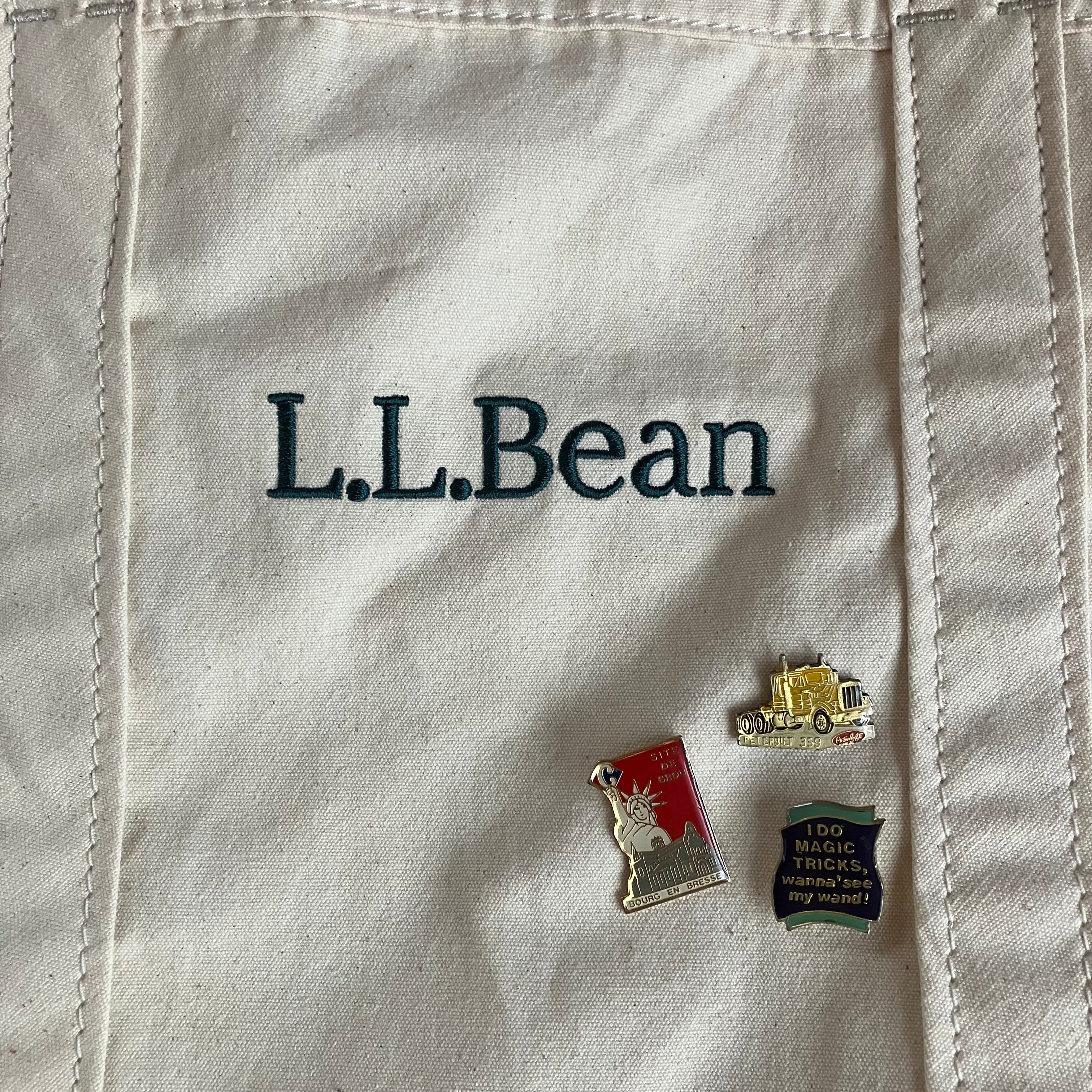 可愛いヴィンテージピンが3コ付いた、L.L.Beanのグローサリートートバック!