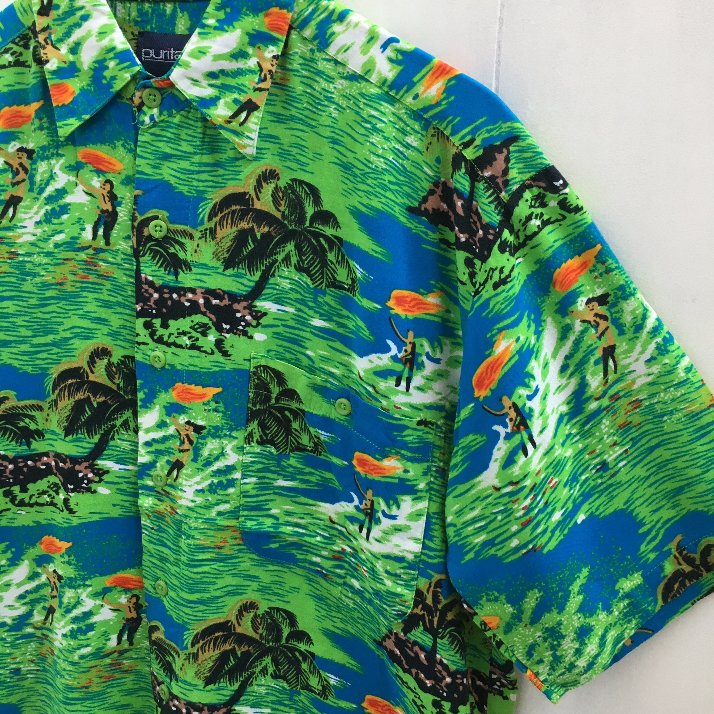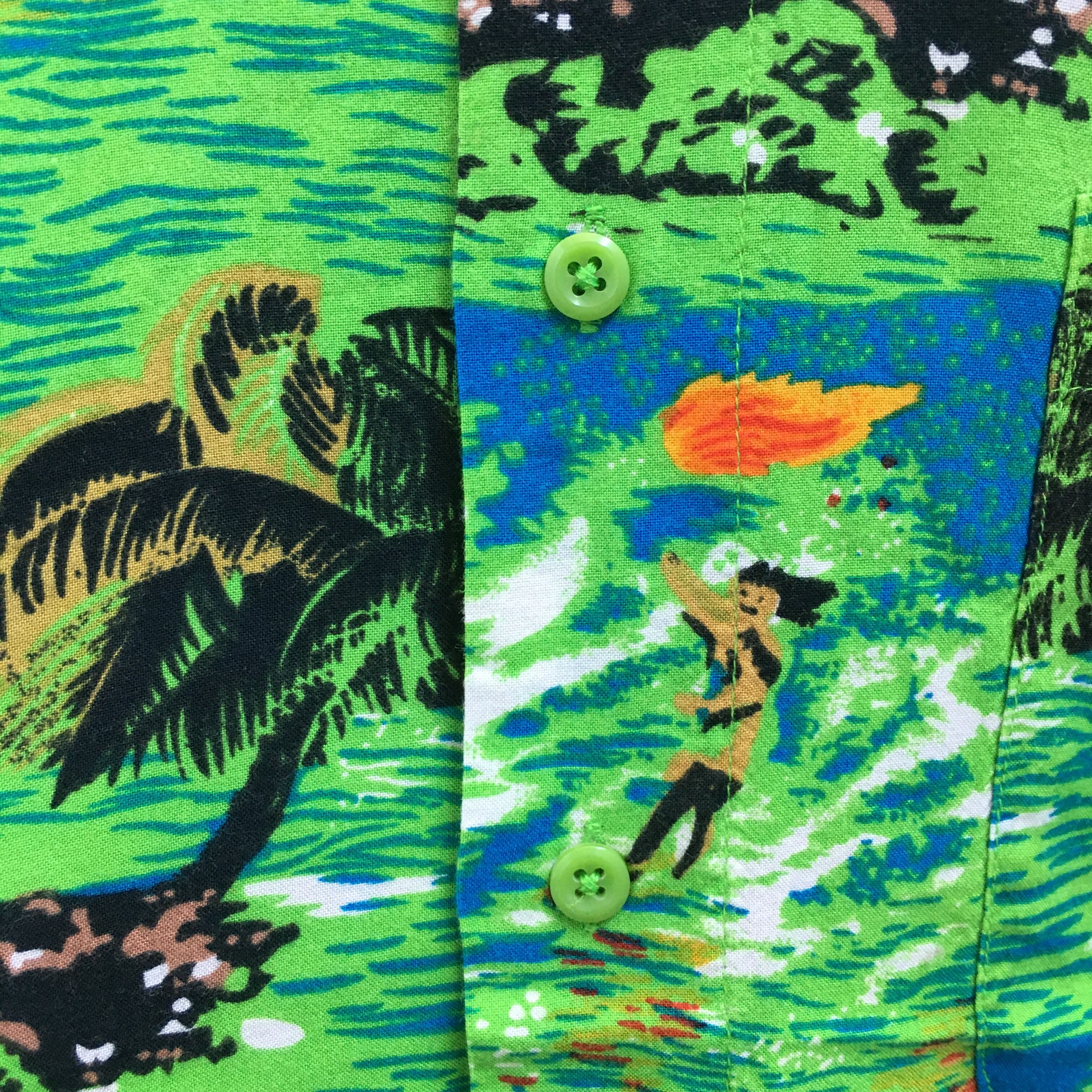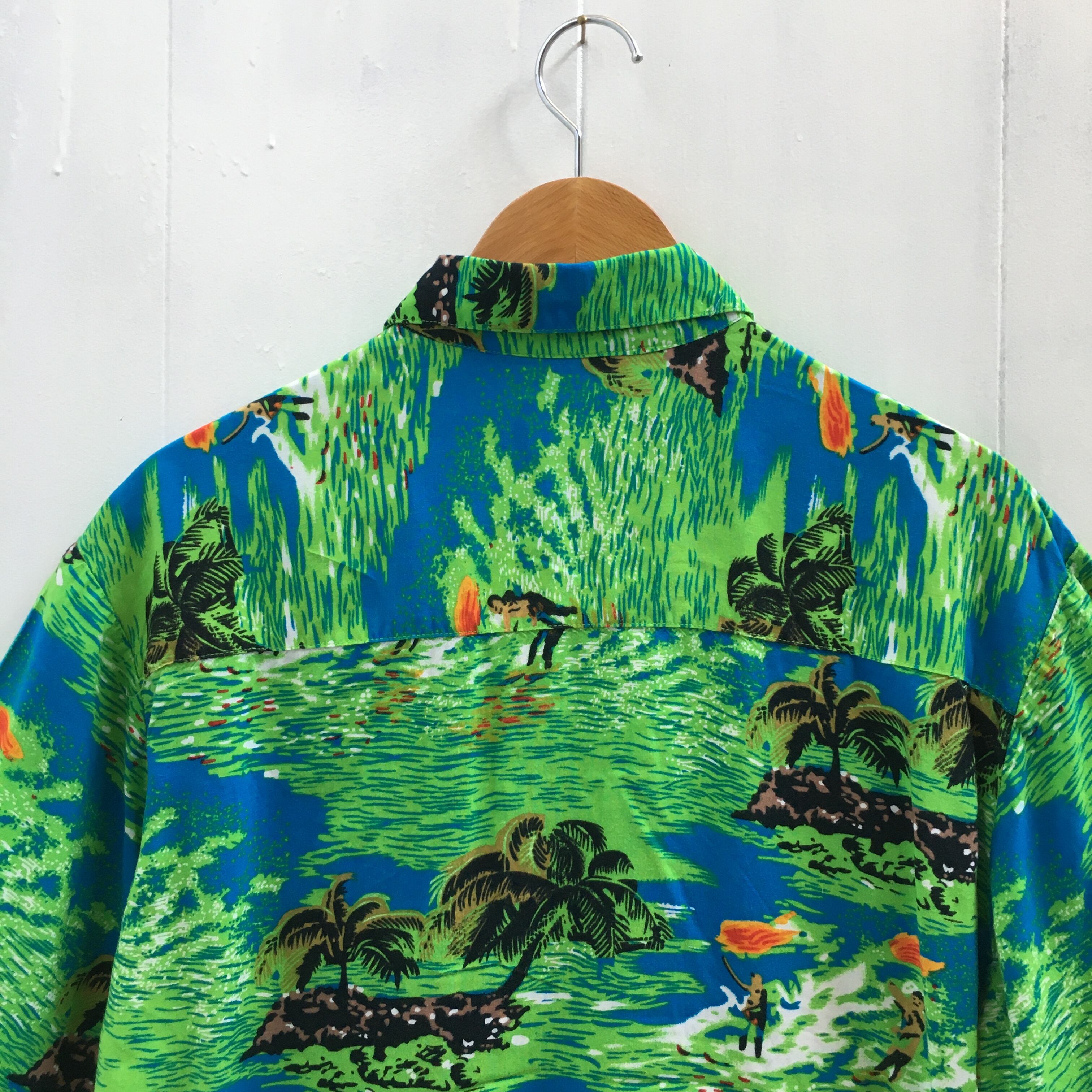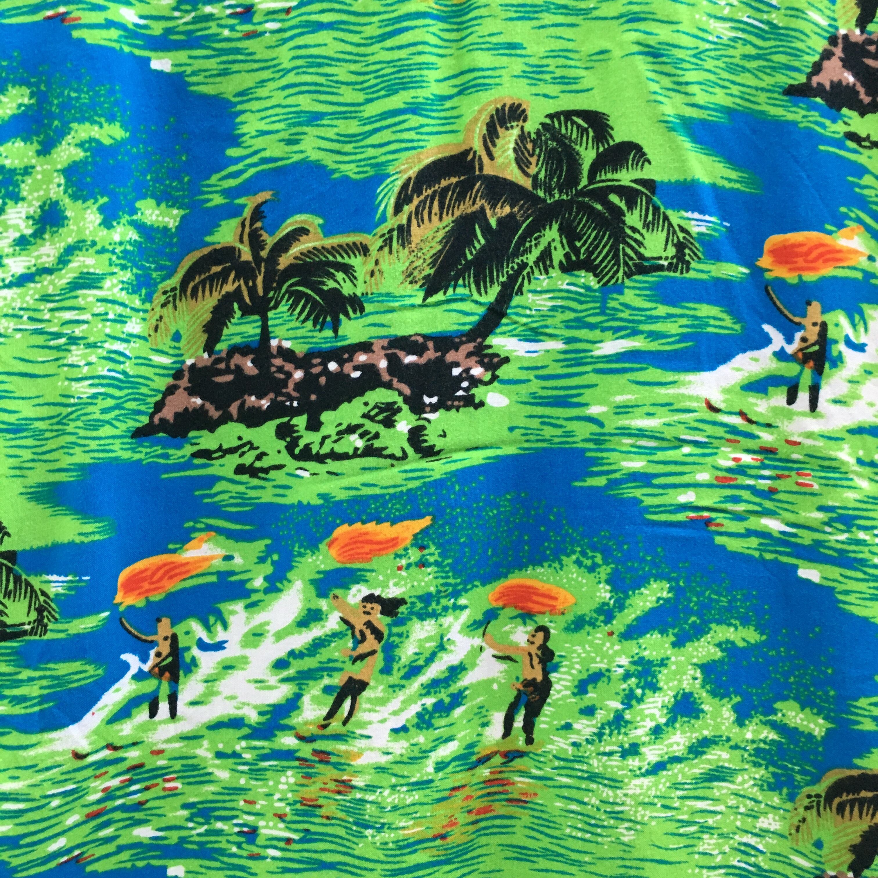 こちらのアロハシャツは、なんといっても島民たちの姿が散りばめられた総柄が最高に可愛くて、ヴィンテージ感たっぷりです!