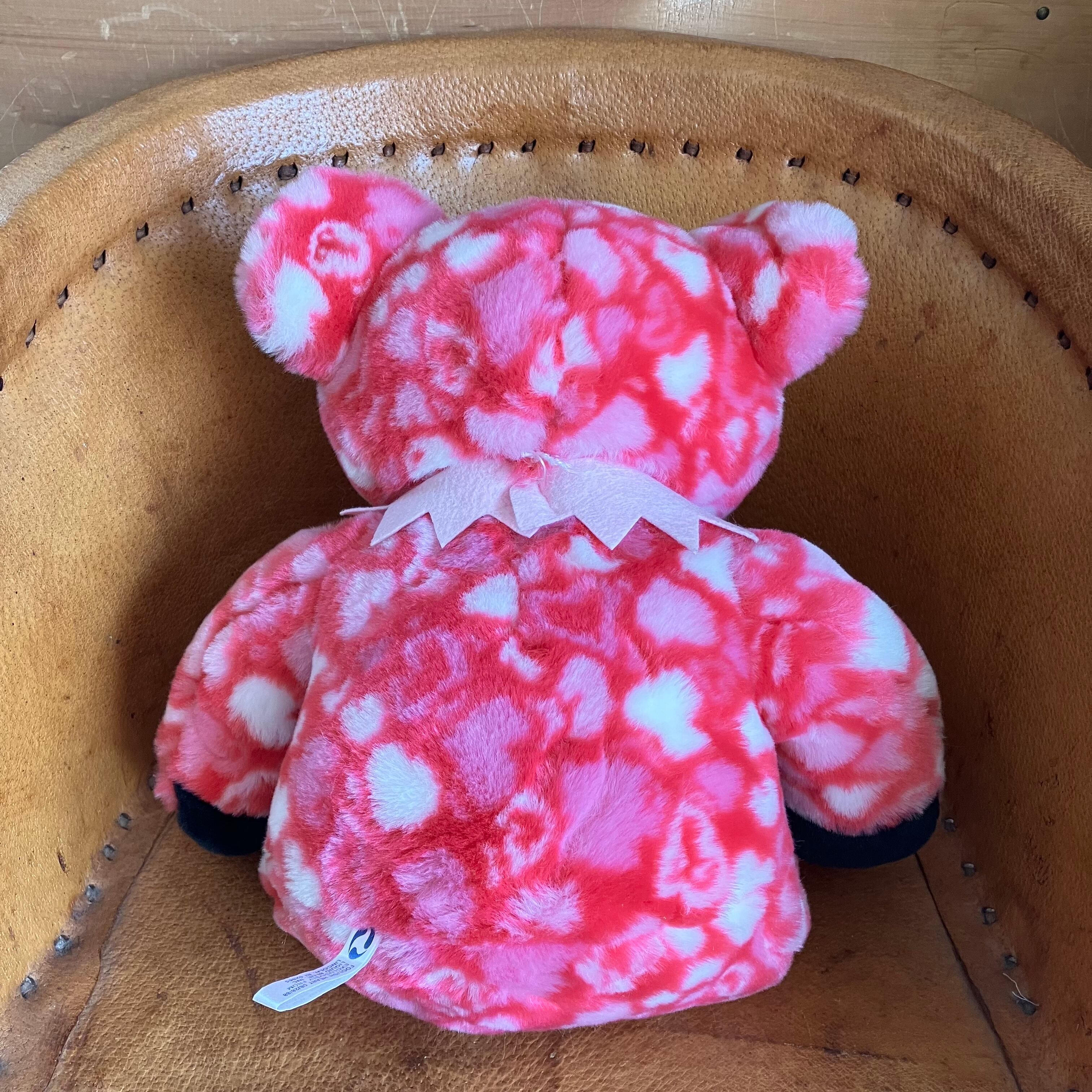 ピンクの体全体にハートが散りばめられていて、ふわふわの抱き心地が可愛いです。