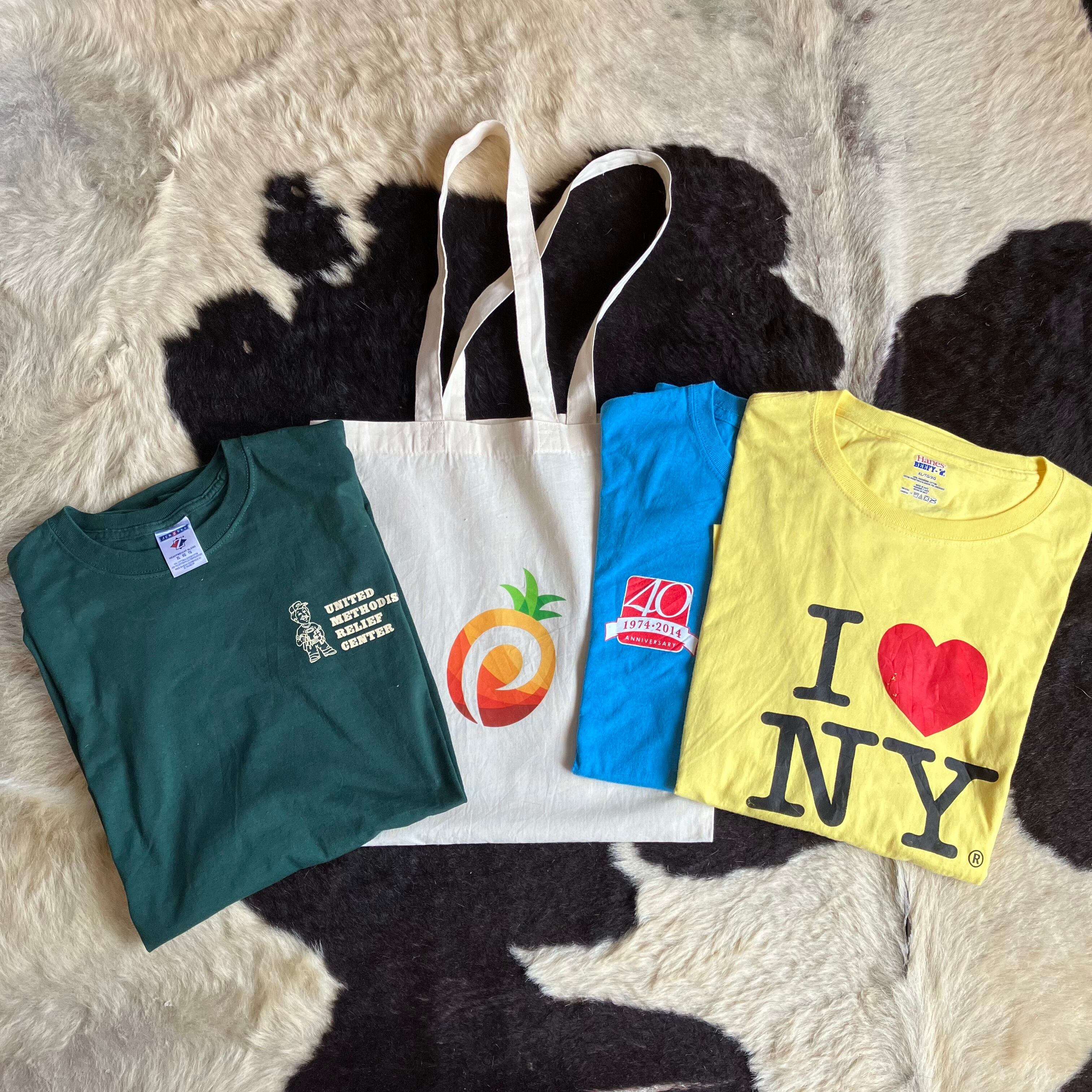 Tシャツ、トートバッグ共に、年代物ですので多少の使用感はございますが、大きなダメージもなく良い状態のものをセレクトしております。