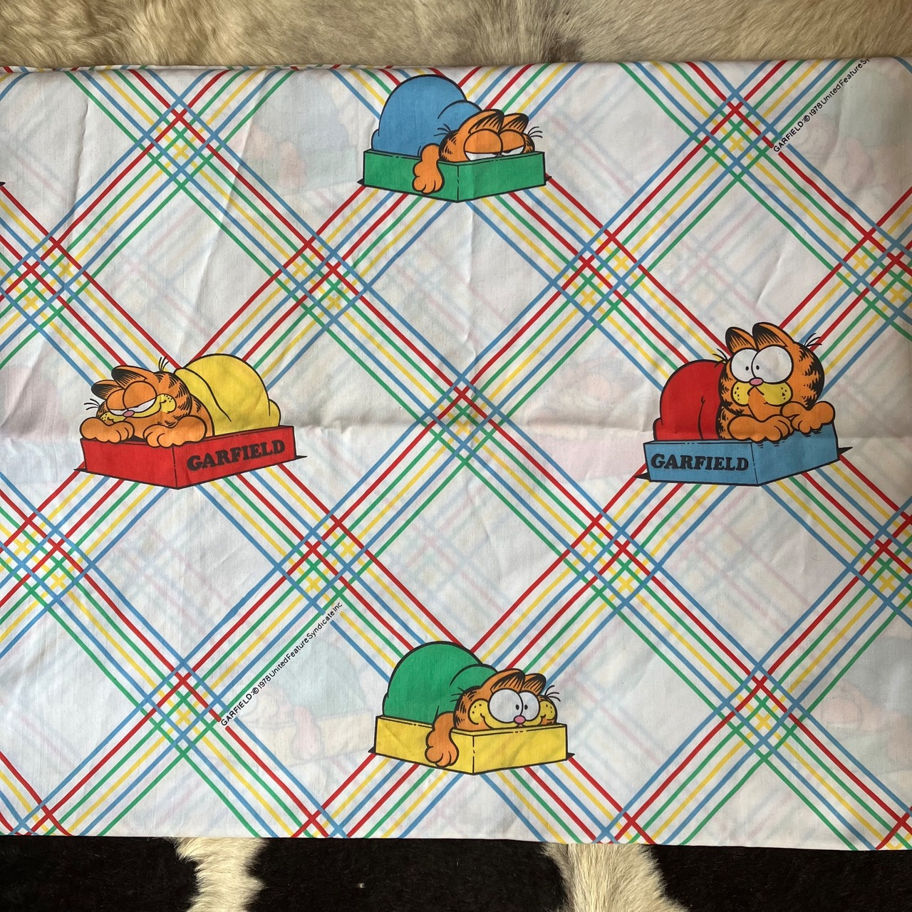 アメリカの新聞漫画に1978年より連載された「ガーフィールド」のビンテージシーツになります。