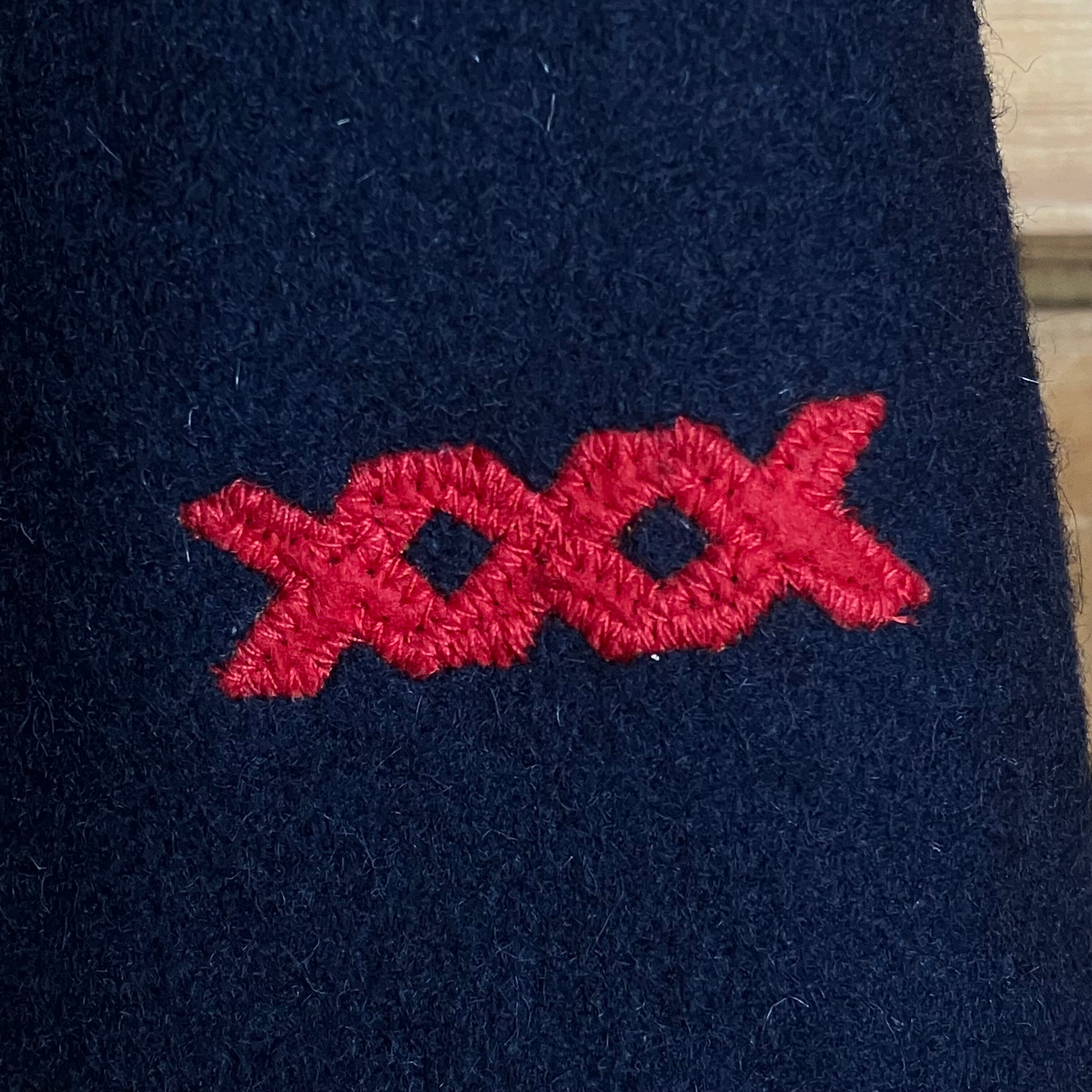 濃紺と赤のリバーシブルとなります。