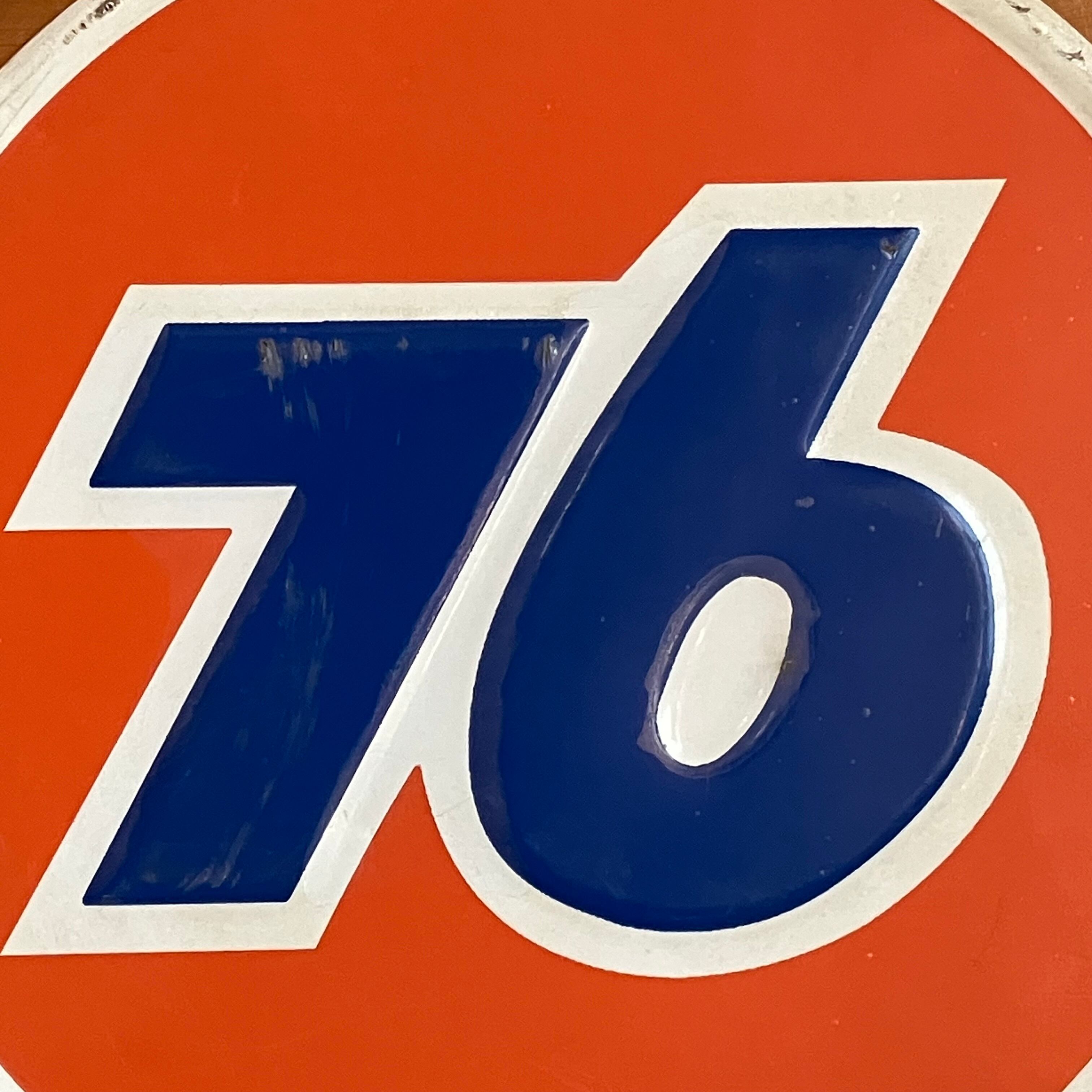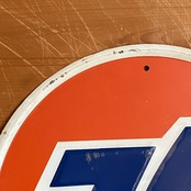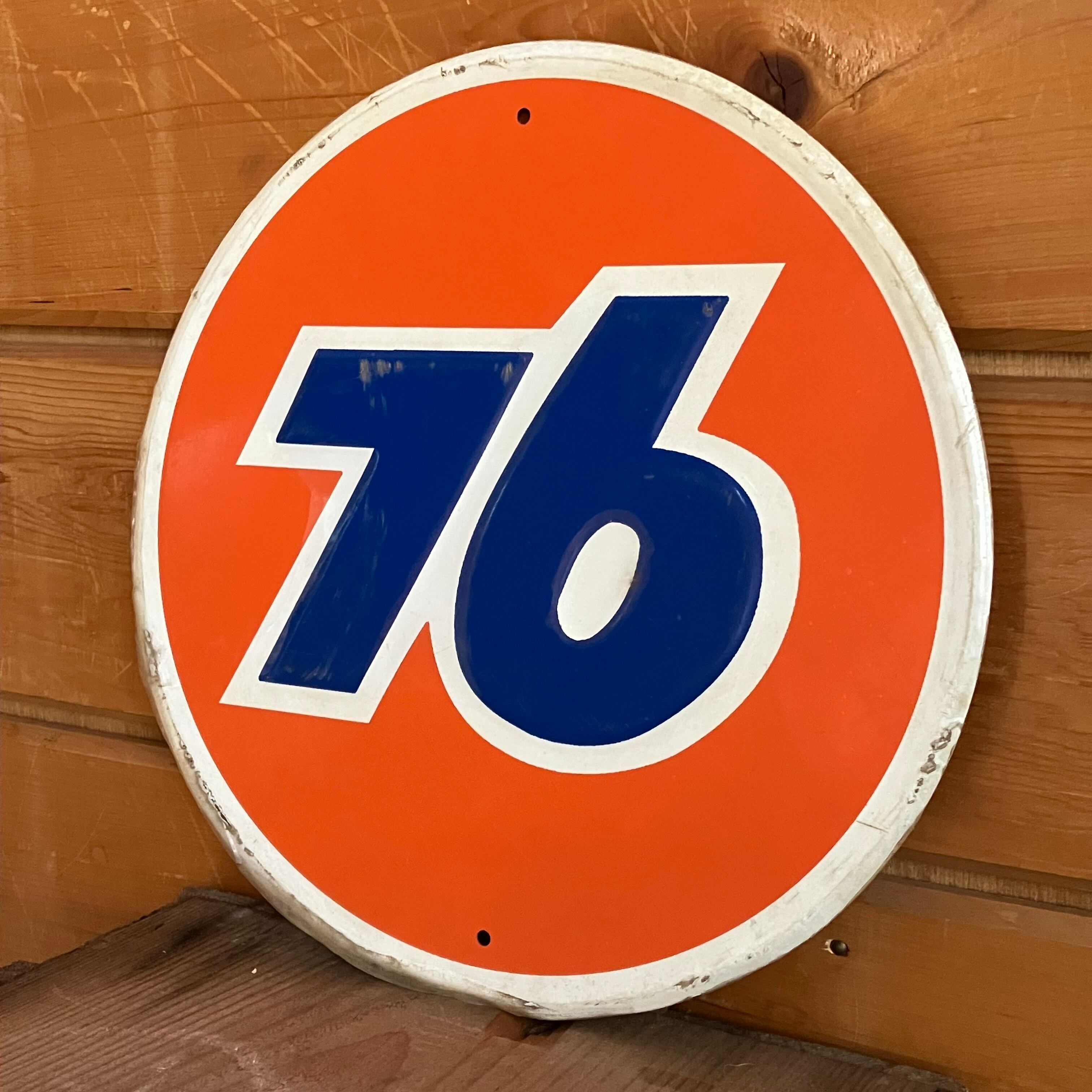 アメリカ・ヒューストンに本社を置く石油精製・販売会社フィリップス66が所有する潤滑油ブランドのひとつで、ナナロクの愛称で親しまれている76のブリキサインプレートです。