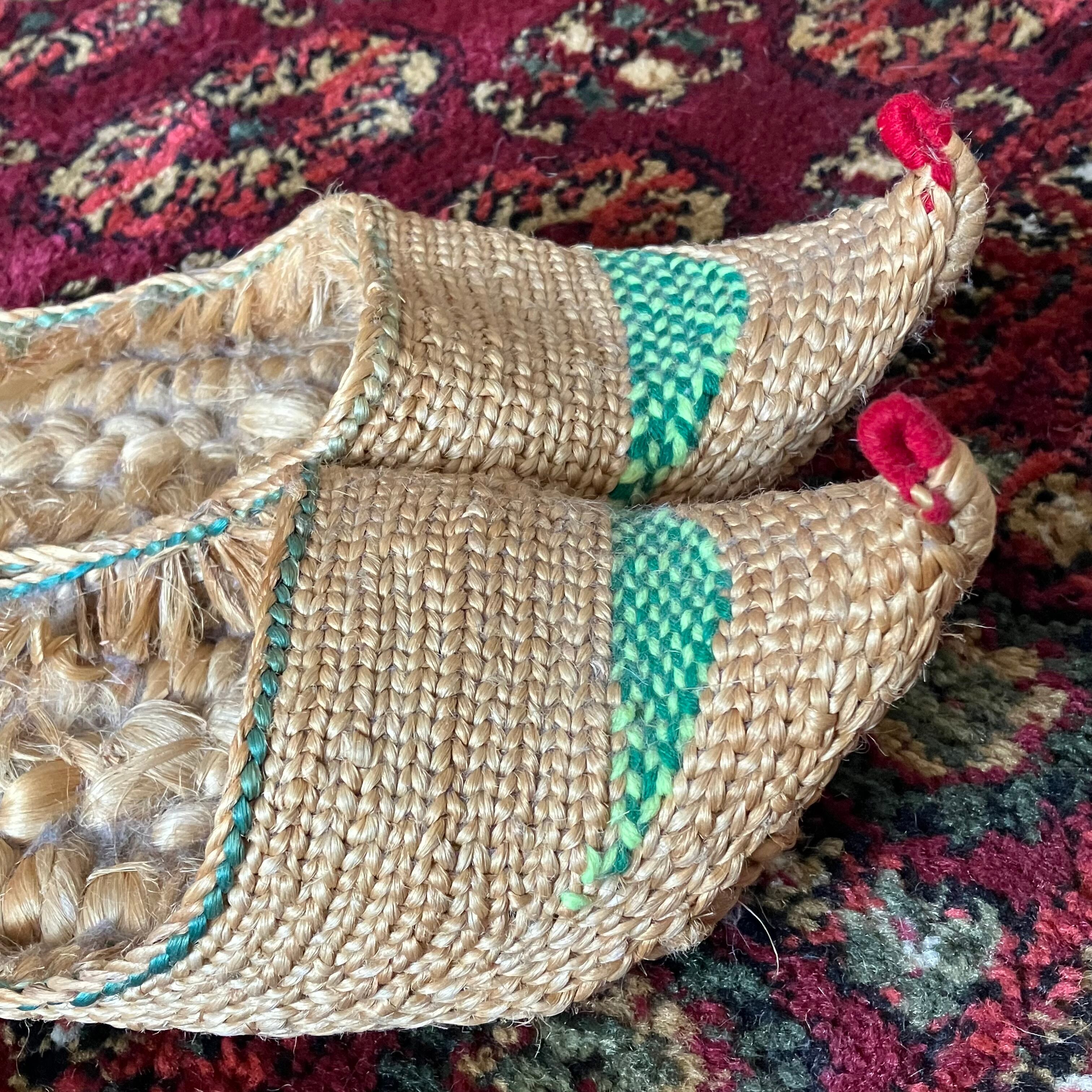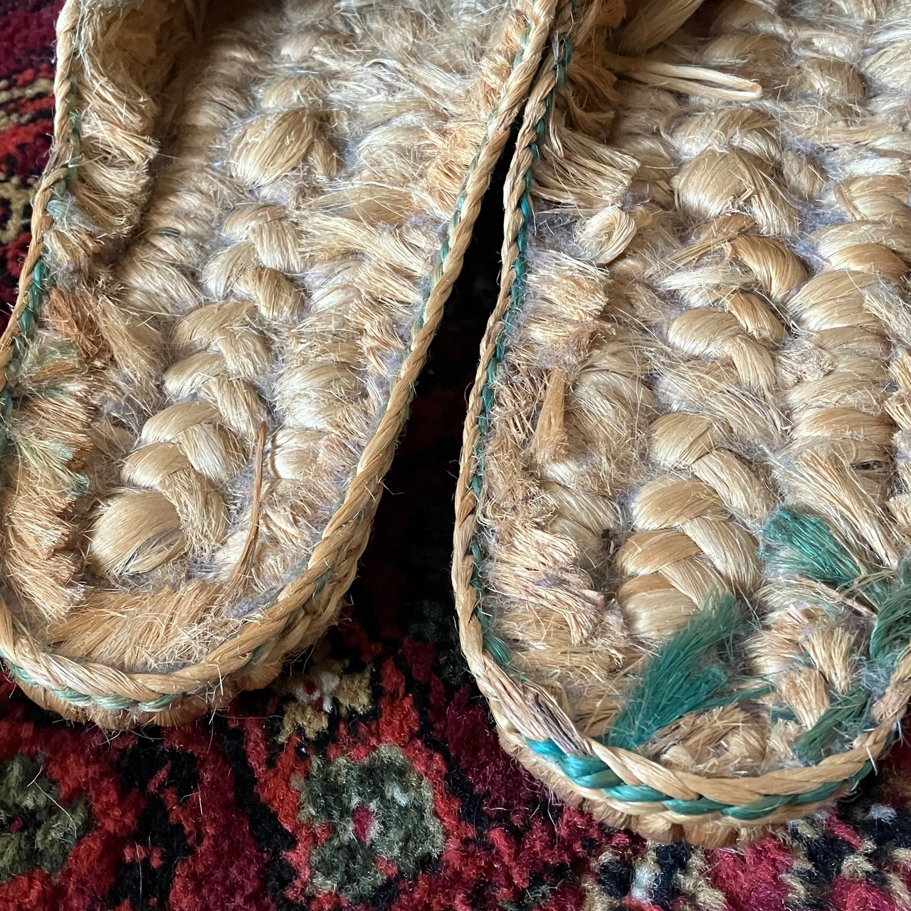 ハンドメイドで編まれたものであるため、左右の大きさ、形が若干違うところもございます。予めご了承くださいませ。