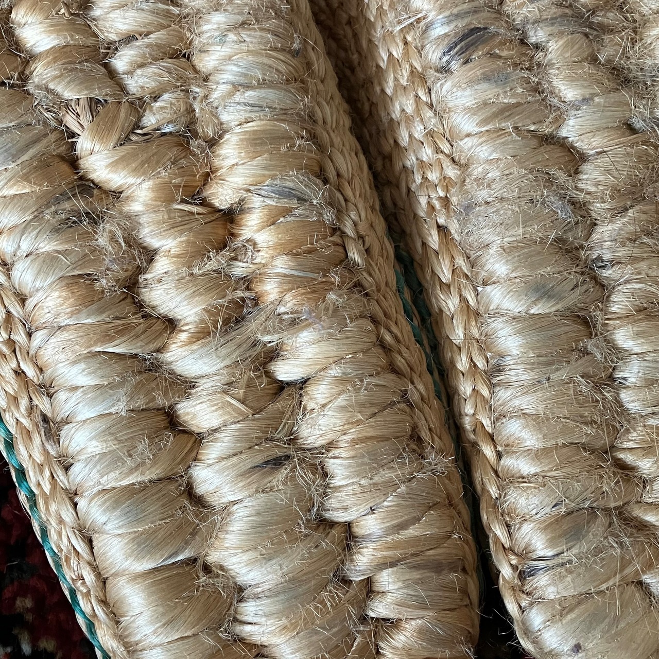 ヒヤシンスの葉っぱのような、い草のような素材で編まれていて、暑い季節も涼しく履けますよ。