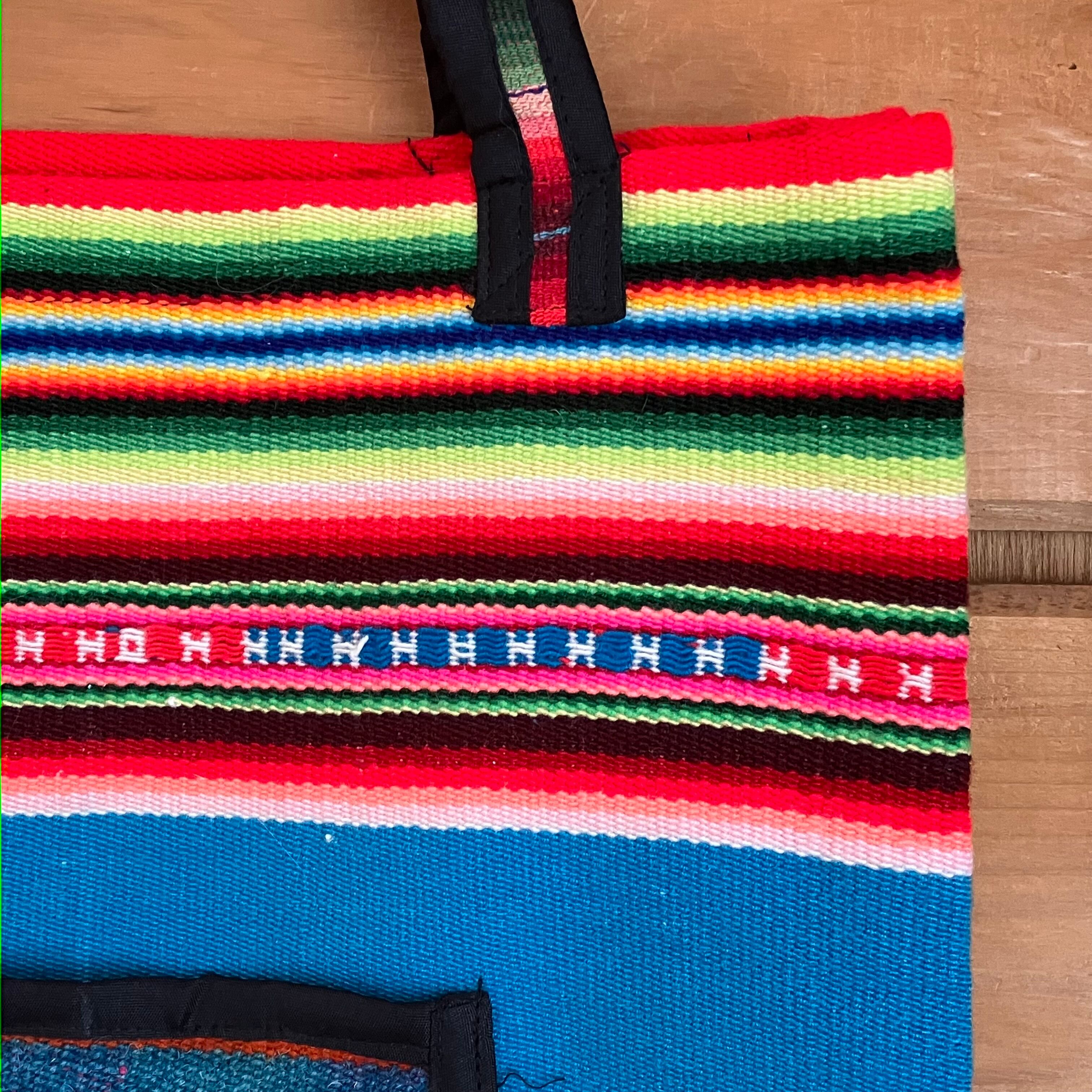 メキシカンラグの手法で作られたランチョンマットから生まれたトートバックです。
