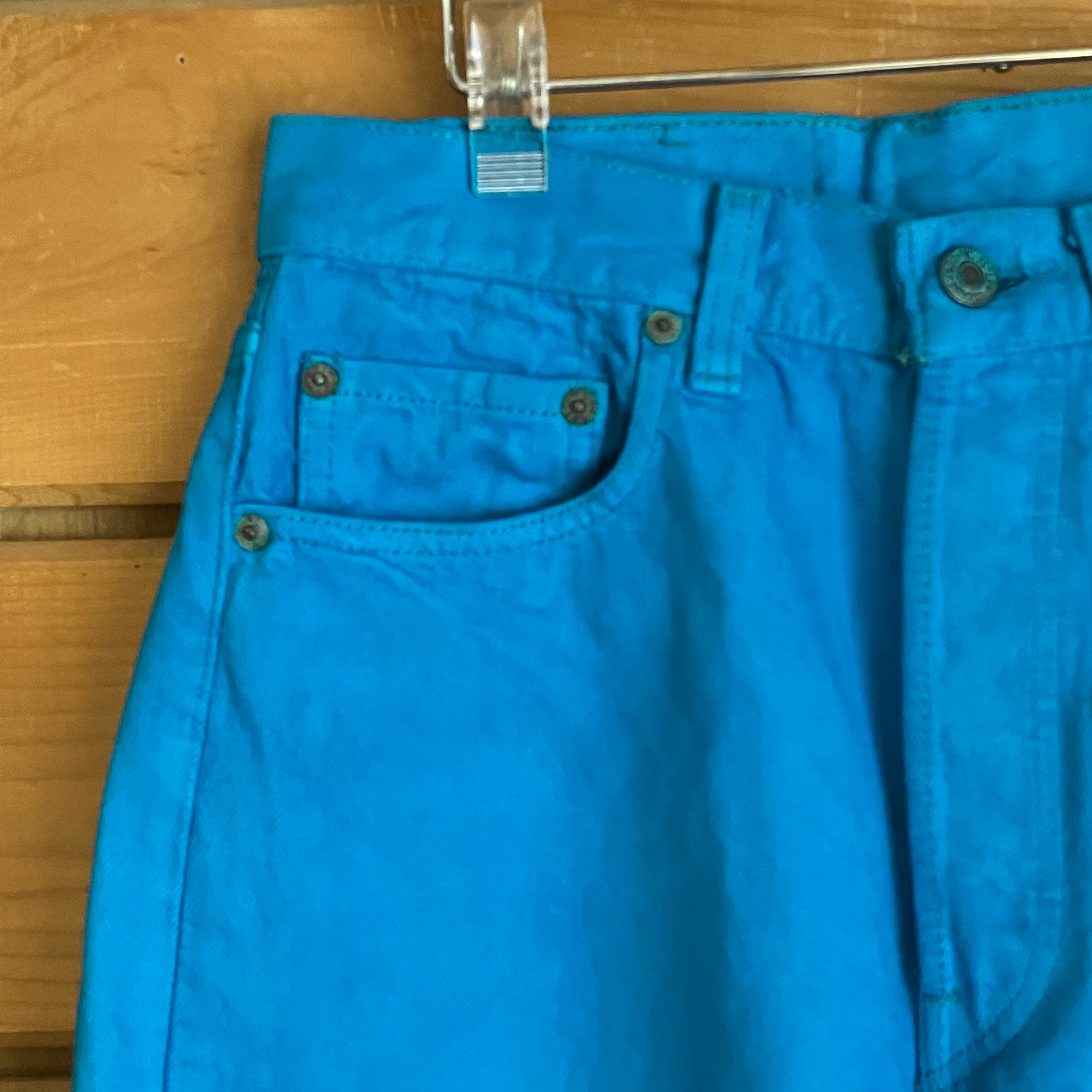 リーバイス501をブルーで後染め、カットオフしたものになります。