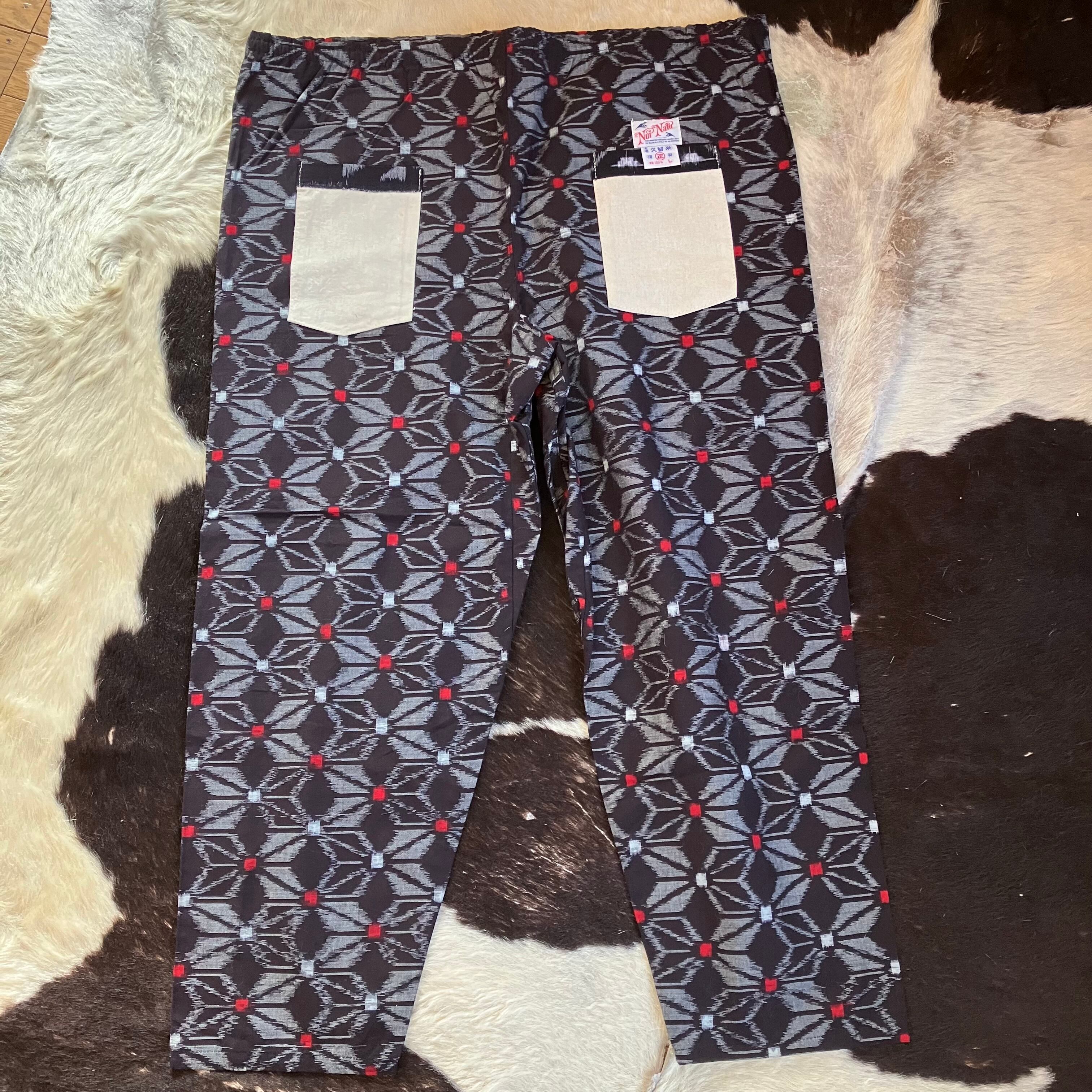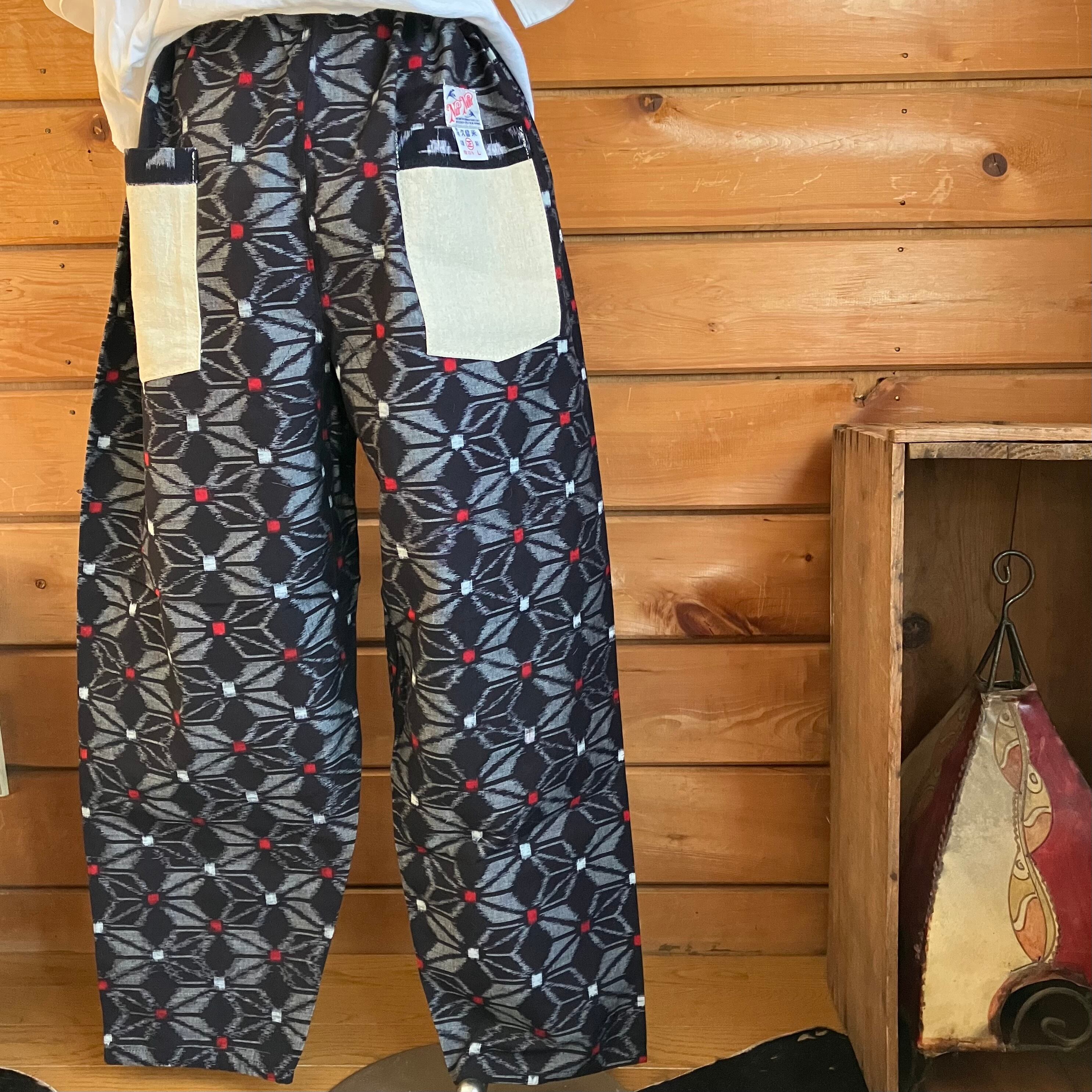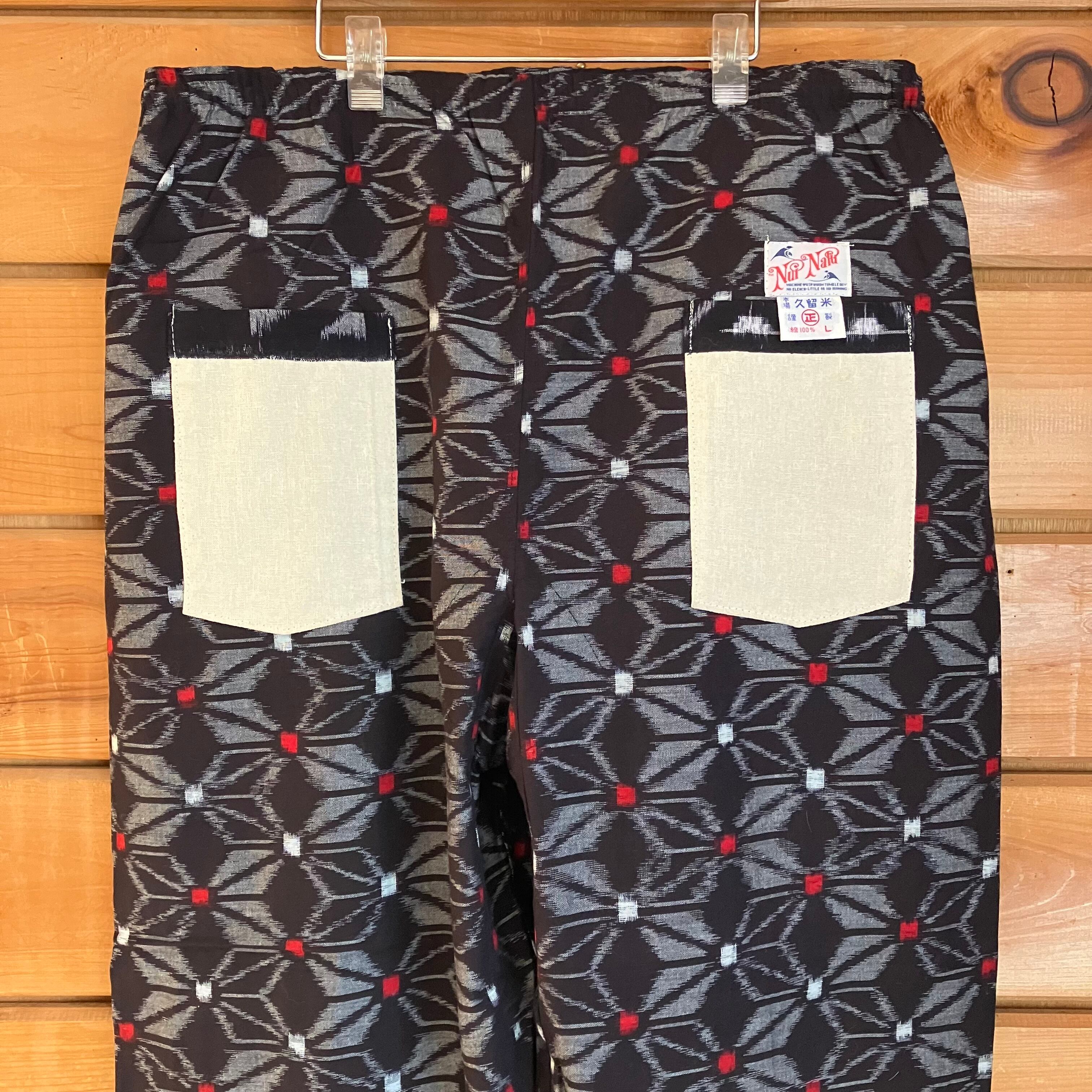 本場 久留米の絣を使った、Nui Naluオリジナルのモンペパンツになります。
