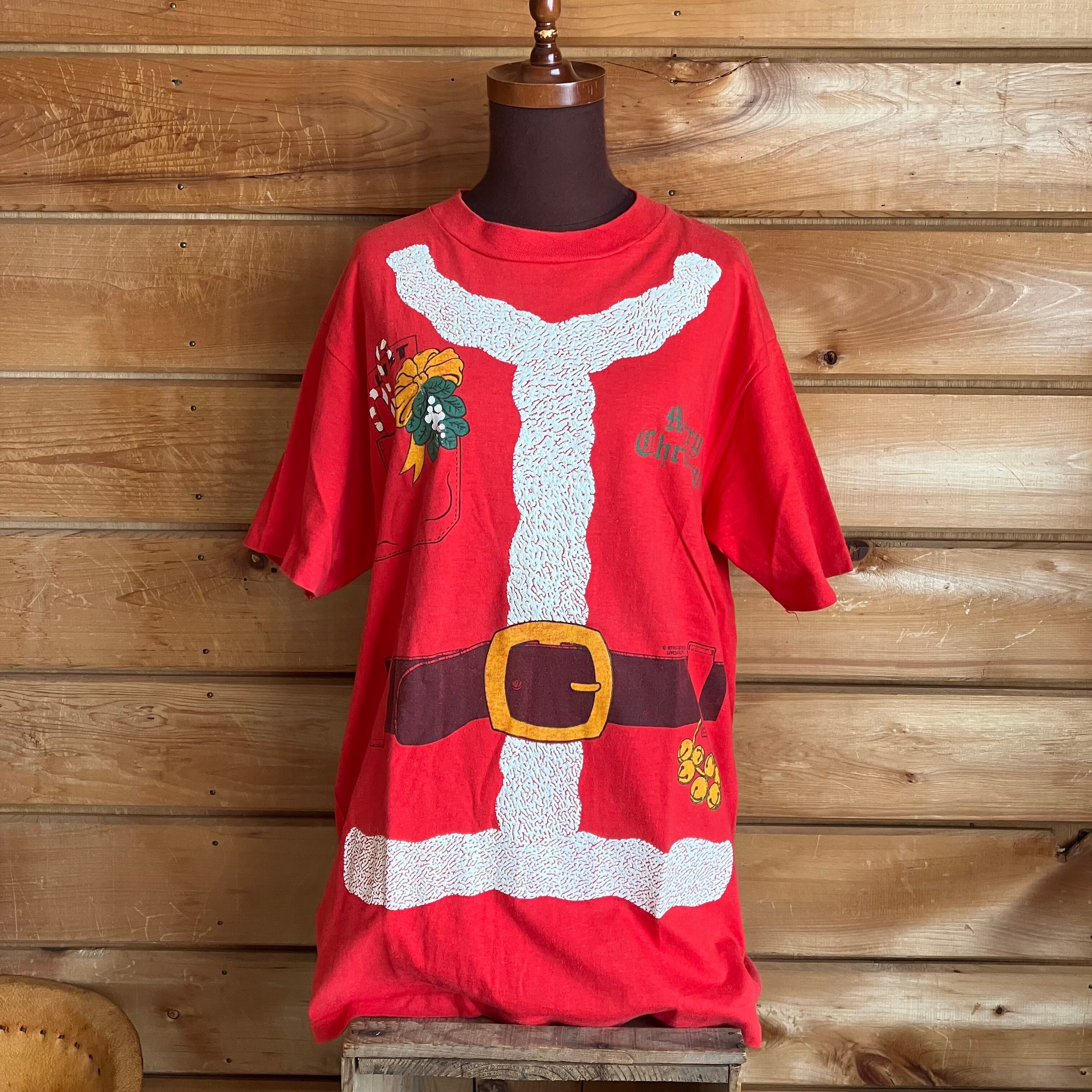 サンタクロースの衣装がデザインされたユニークなTeeです。